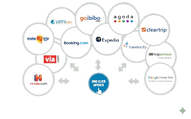 We manage Booking.com, Expedia, Agoda, Airbnb, MakeMyTrip, Goibibo, and other global/local OTAs.